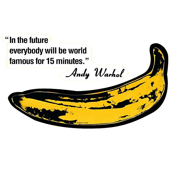 1968年,安迪‧沃荷 Andy Warhol說:「In the future, everybody will be world famous for 15 minutes.」(未來,每個人都將成名十五分鐘。)